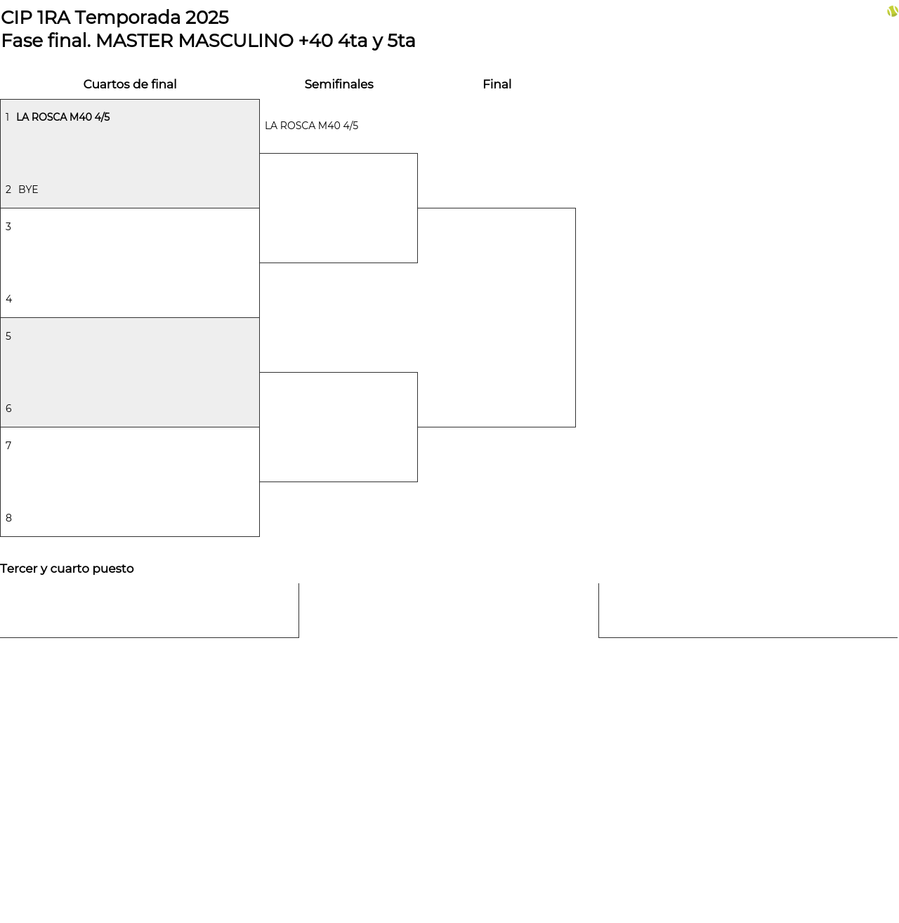 Cuadro principal MASTER MASCULINO +40 4ta y 5ta