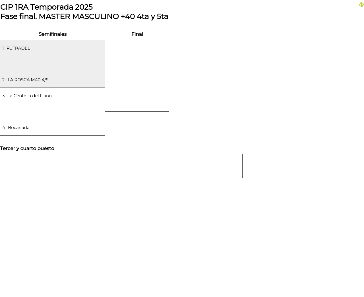 Cuadro principal MASTER MASCULINO +40 4ta y 5ta