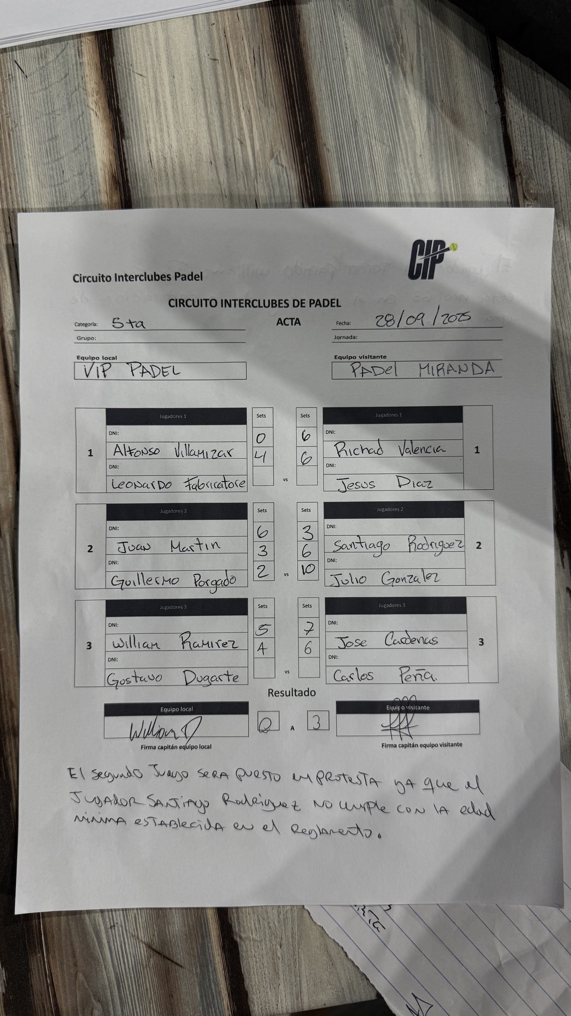 Estamos jugando la primera jornada contra pádel Miranda y alinearon en su segunda dupla un jugador que se llama Santiago Rodríguez dallas