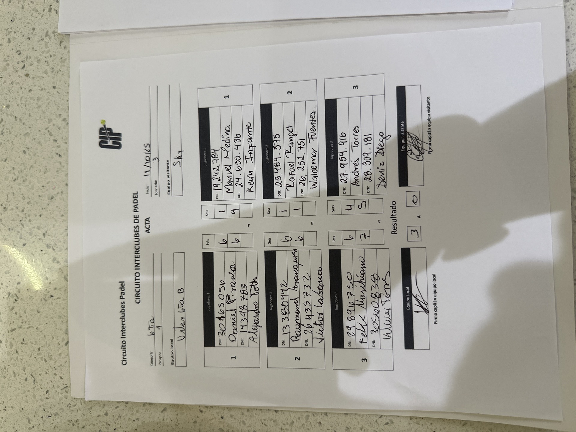 Imprimir acta del partido