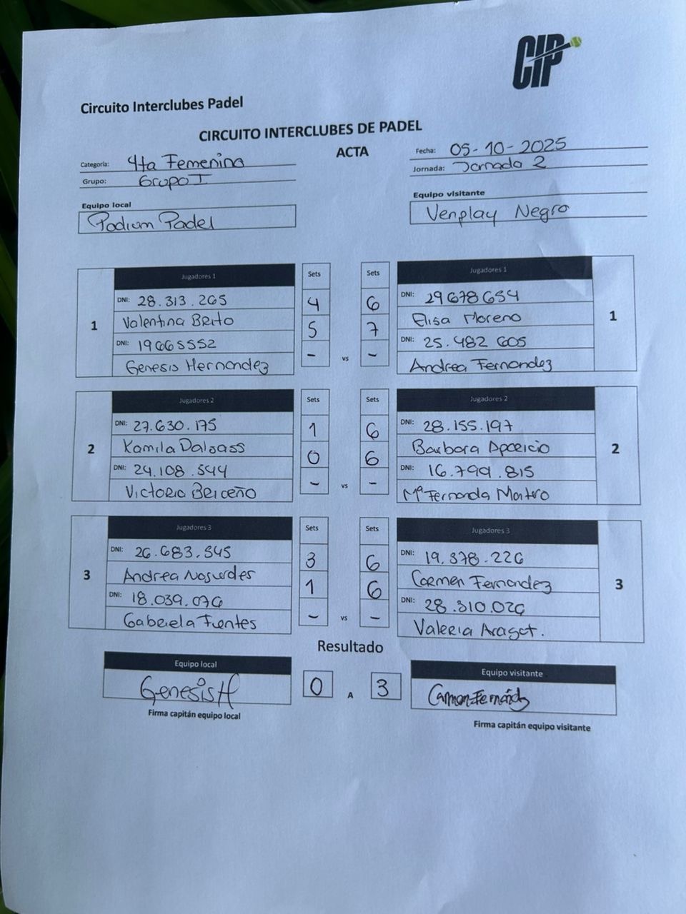 Imprimir acta del partido